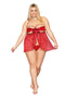 Black 2pc Flyaway Slitted Long Dress Teddy With - Snap Crotch and Laced Garters - Queen Size