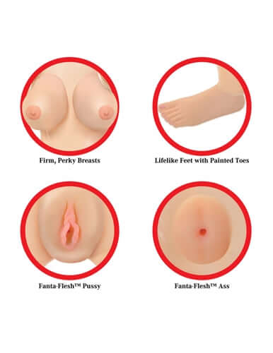 Wanna see whats hiding under this pretty pink bikini... This incredible life size inflatable love doll was meticulously designed with realistic features for a truly lifelike experience. Her sexy 3-D formed head features realistic eyelashes and a luxurious head of real hair thats begging to be pulled. Watch her really come to life with arms that swivel 360 degrees and delightfully painted finger and toenails. Give her firm and perky breasts a squeeze while you enjoy her ultra-lifelike Fanta-Flesh skin pussy and ass that feels even better than the real thing The Fanta-Flesh pussy and ass are removable for easy in-depth cleaning, and can even be enjoyed separately for masturbation. An inflation pump vinyl repair kit and instructions are conveniently included.