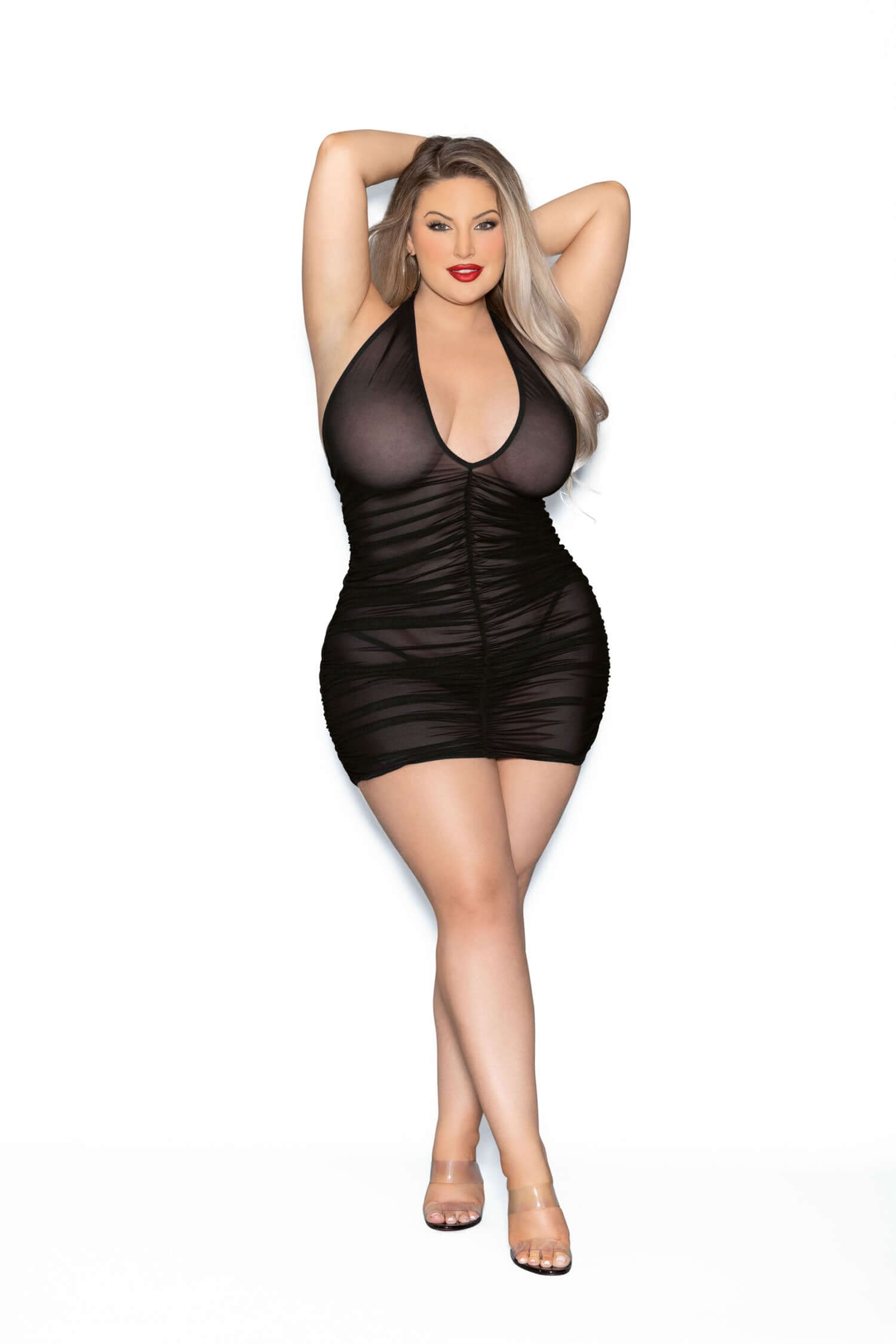 Rene Rofe Take Me Fishnet Mini Dress Queen Size Black
