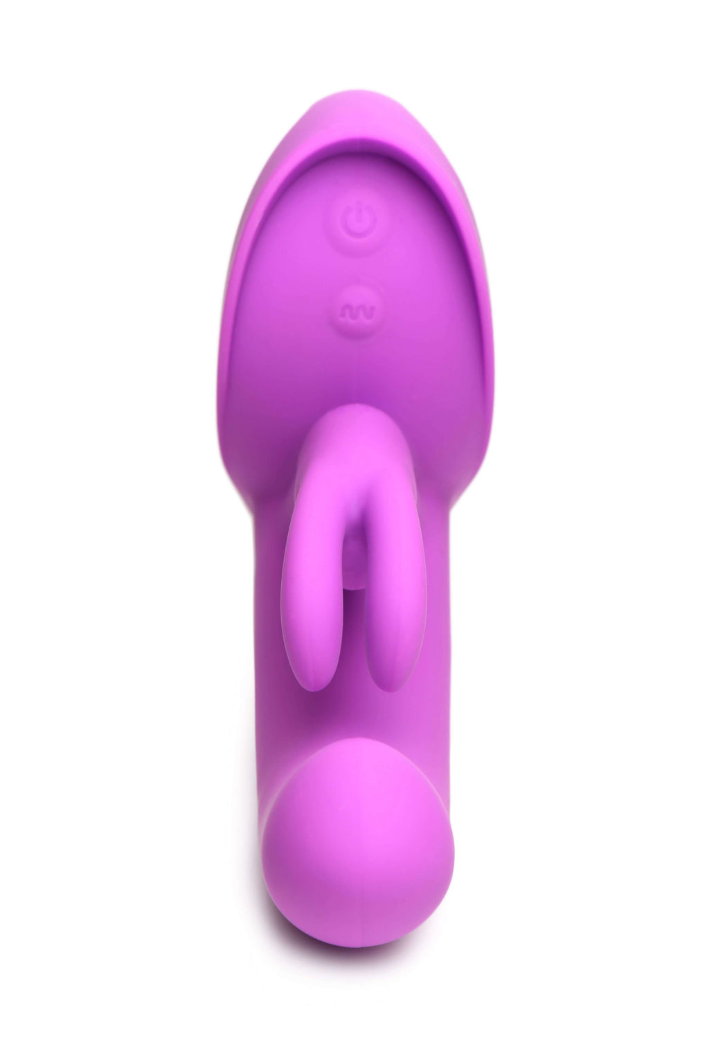 Thoroughly indulge and pleasure yourself with this Come Hither Silicone Vibrator. Designed with your body in mind, it targets female anatomy so both external and internal clitoral, erogenous zones are targeted. The rabbit ears on the outside rest on either side of your clitoral hood and buzz with 3 speeds and 7 patterns of vibration. The curved shaft targets your G-spot and has 3 speeds and 7 patterns of a G-spot massaging, 'come hither' motion that will drive you wild! The ergonomic handle is easy for you or your partner to hold so you can writhe, grind and explore all the settings.