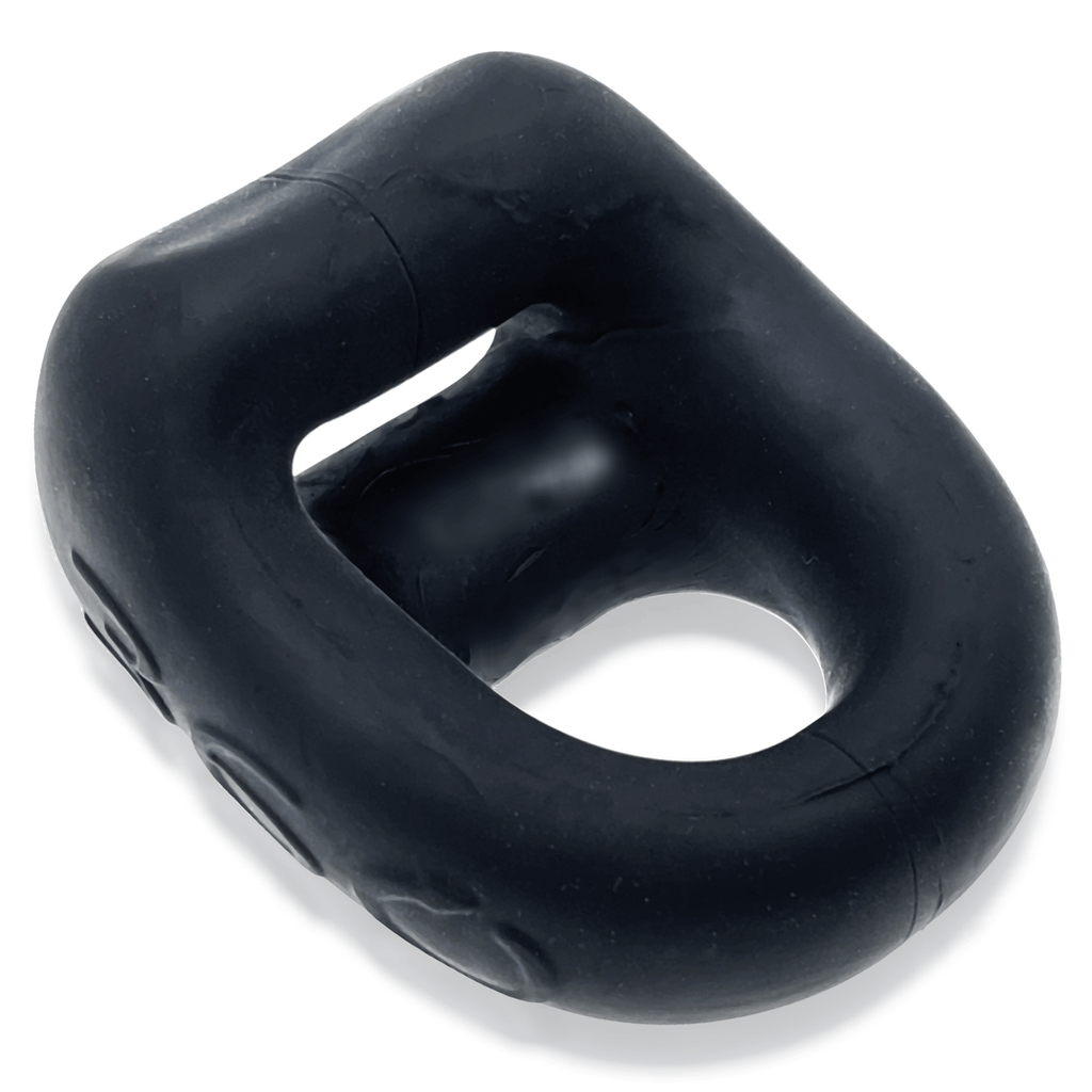 • Two in one design combines cockring with ballsling • Thick, blubbery material doubles as a bulge enhancer/packer • Opening at the base pushes balls down and out • Sleel shape resembles OXBALLS best-selling HUNG cockring • Made from super-soft, strong, stretchy FLEXtpr
