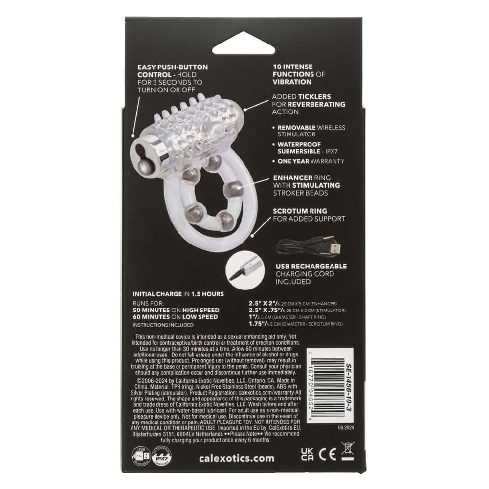 Included with the enhancer is a wireless mini vibrating bullet, designed to provide powerful and targeted clitoral stimulation. The compact bullet integrates seamlessly into the ring, adding vibration without bulk or restriction. This combination of pressure, texture, and vibration creates a layered pleasure experience that benefits both partners.