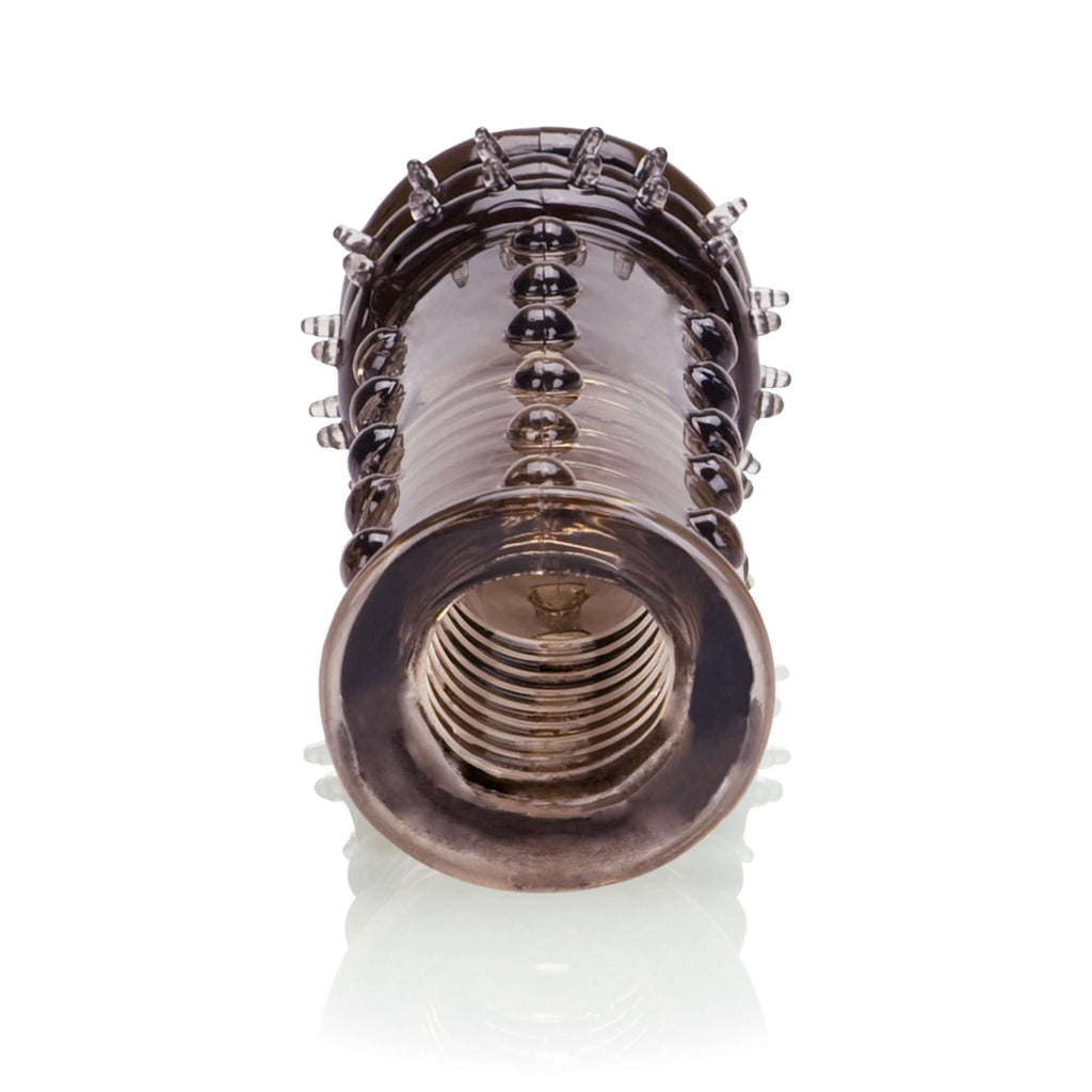 Designed to add approximately 2 inches (5 cm) to overall length, this extension features a flexible, body-friendly sleeve that fits comfortably over the shaft. The interior is designed for a secure, natural feel, while the exterior includes subtle ribs and an accentuated head shape to enhance sensation during use. The smooth, smoke-tinted finish adds a discreet, realistic appearance suitable for a wide range of preferences.