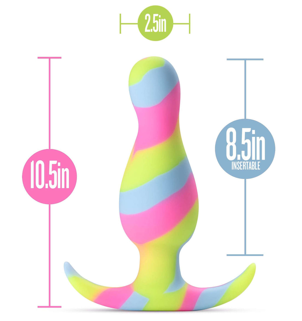 Modern, stylish, and beautiful - meet Avant Kaleido. Kaleido has a tapered head for easy insertion and a larger secondary curve for additional sensations during play, all with a beautiful, bright array of colors! Kaleido is Ultrasilk smooth and made of Puria platinum-cured silicone, making it body-safe, phthalate free, latex free, and fragrance free. It also features StayPut technology to ensure it doesn't pop out during use and remains secure within the body. The AnchorTech base keeps the plug comfortable for long-term wear!