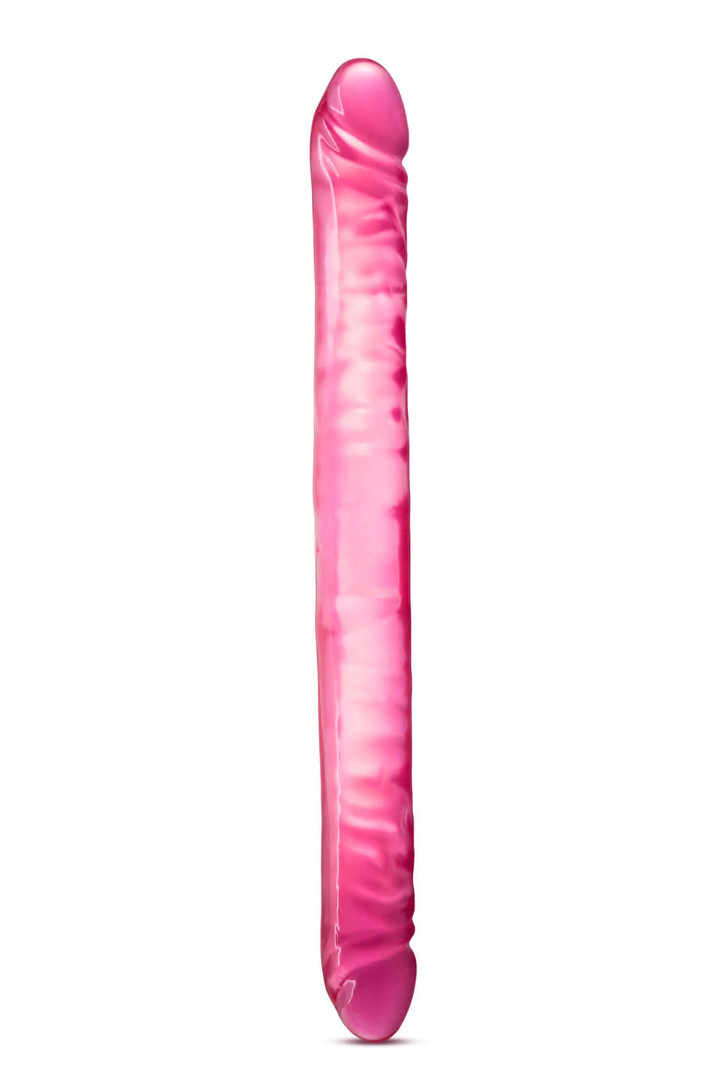 Double your pleasure with our 18 inch Double Dildo. Perfect for lesbian couples that both enjoy penetration, this double dildo allows you to be pleased at the same time. With 18 inches total length to share, that leaves 9 inches for each of you. This Double Dildo is realistic with a pronounced head on each end to increase pleasure. Our double dildo is also flexible enough to be used for double penetration. Made of fragrance and Phthalate Free PVC: this toy is body safe and easy to clean! Just wash with warm soap and water, or your favorite toy cleaner, before and after every use. Pat dry with a soft towel before storing.