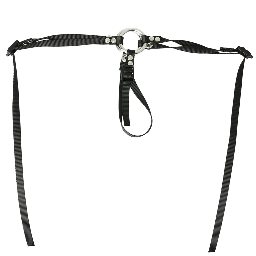 This thong-style strap-on is minimalist and sleek, perfect for pegging or packin g. This strap-on has 3 points of adjustment and accommodates hips up to 60 inch s. Use with flared-base dildos. Dildos sold separately.