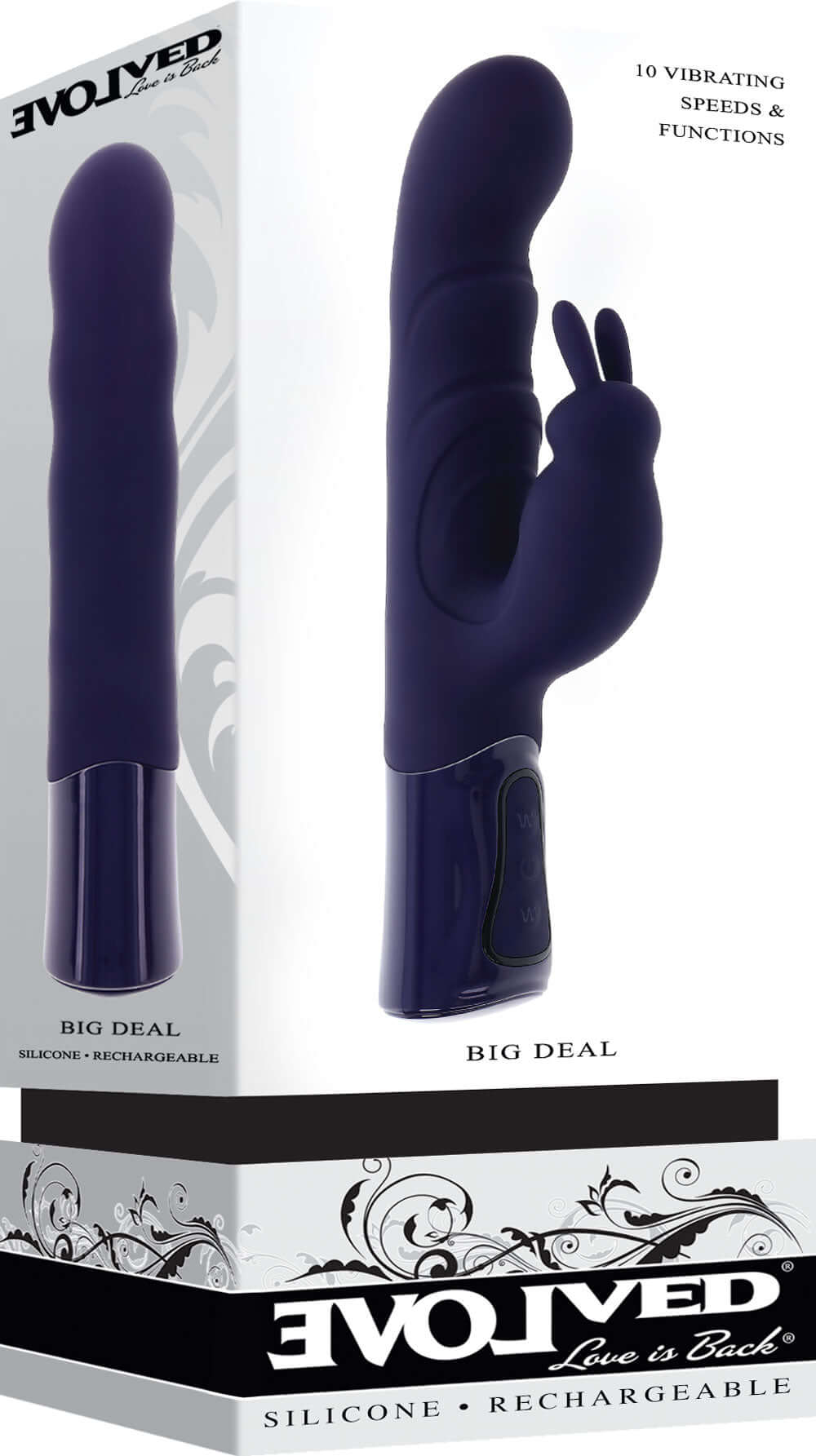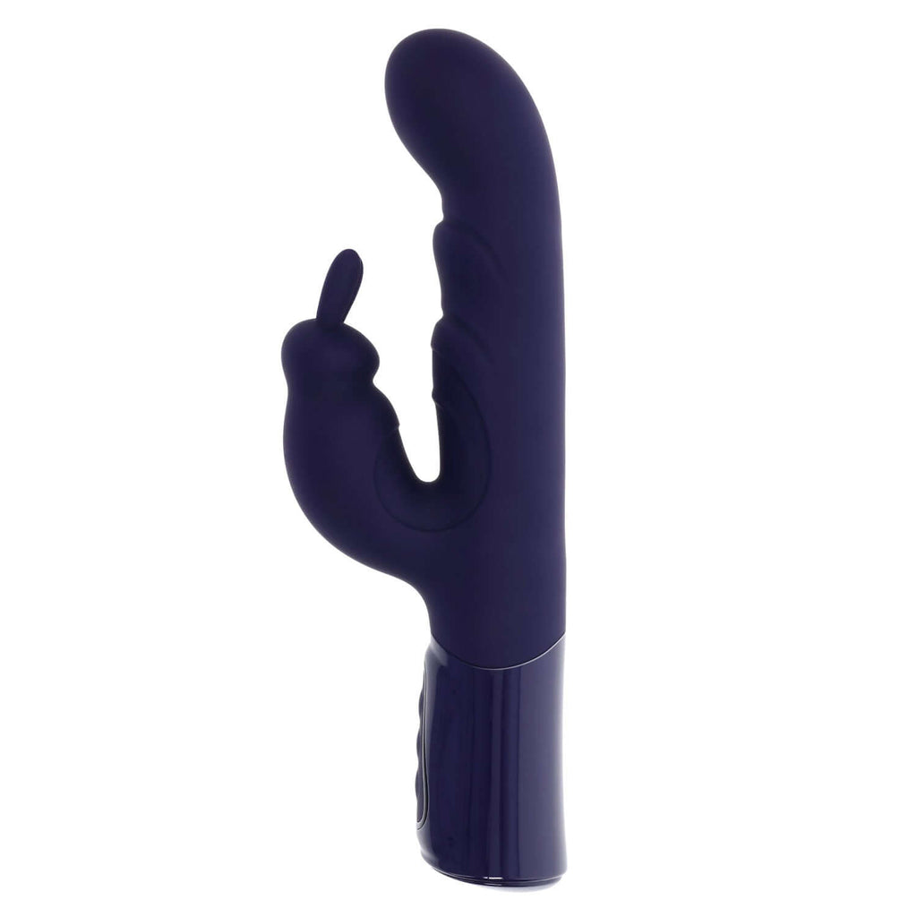 Indulge in some big bunny energy with this girthy rabbit vibrator that delivers power and finesse. The thick, textured shaft curves at the tip for delicious exploration while the larger-than-most rabbit satisfies with tireless stimulation. Both shafts are flexible to move with your body and can be controlled independently for the perfect custom experience.