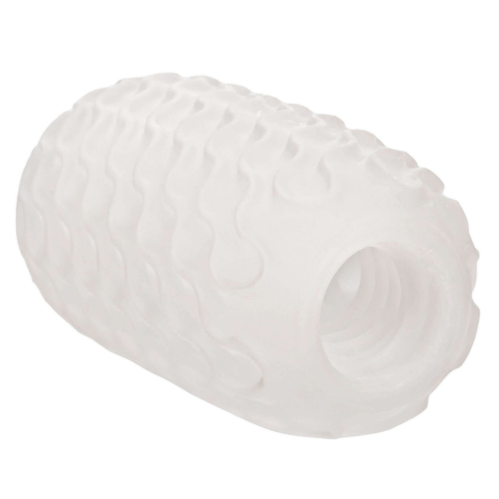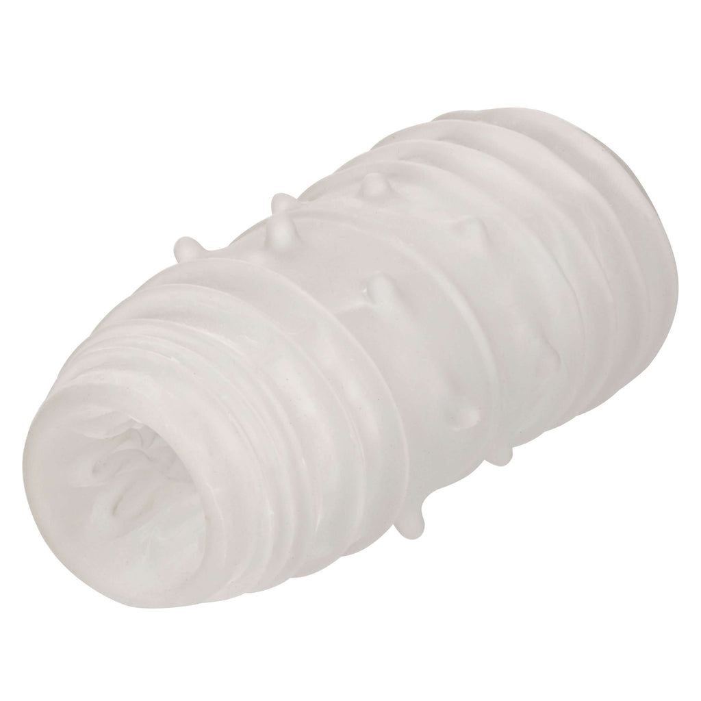 • Super stretchy TPR sleeve • Incredibly textured for ultimate stimulation • Waterproof • Body-safe, unscented, phthalate free