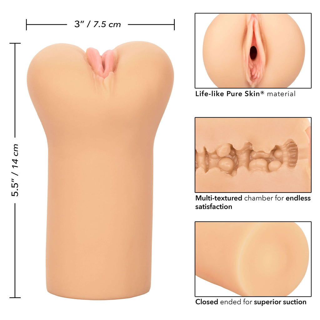 • Closed ended for superior suction • Soft, tight and stretchy • May be used in or out of the water • Hygienically superior and maintenance free • One Year Warranty • Multi-textured chamber for endless satisfaction