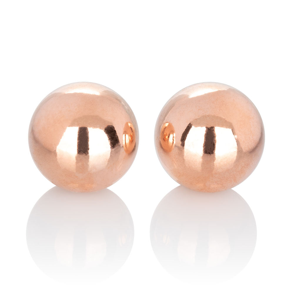 The blushing Climax Weighted Balls™ are sculpted to naturally increase stimulation, improve sexual satisfaction and increase pelvic muscle strength. Increase sexual arousal and delightful stimulation as the petite weights ripple in harmony with your every movement. Naturally tone and tighten pelvic muscles to improve orgasm intensity and reduce risk of incontinence. The carbon-free steel is electroplated for a blushing copper color.