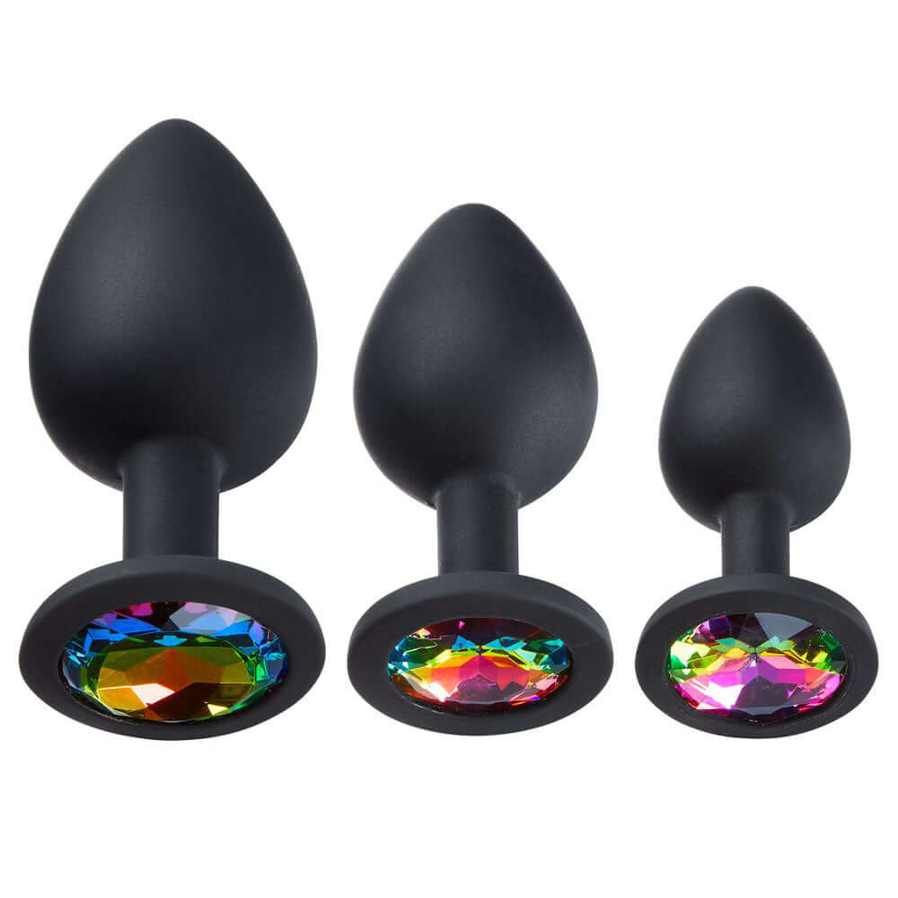 Add a splash of color and sophistication to your intimate play with the Cloud 9 Novelties Gems Silicone Anal Plug Set. Designed for both beauty and pleasure, this jeweled collection features radiant rainbow multicolor gems set in smooth, silver-chromed silicone plugs that are as elegant as they are stimulating. Whether you’re a beginner exploring anal play or a seasoned enthusiast, these plugs deliver comfort, confidence, and a touch of sparkle.
