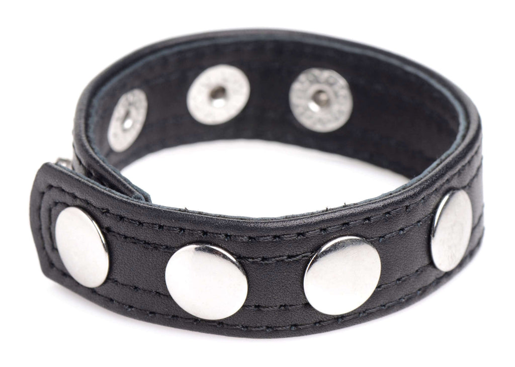The nickel-free metal snaps offer a body-safe solution for a secure fit, while the soft leather strap caresses your skin with every touch. Embrace the freedom to experiment with different snaps until you find your perfect fit, allowing you to enjoy enhanced sensations and prolonged pleasure.