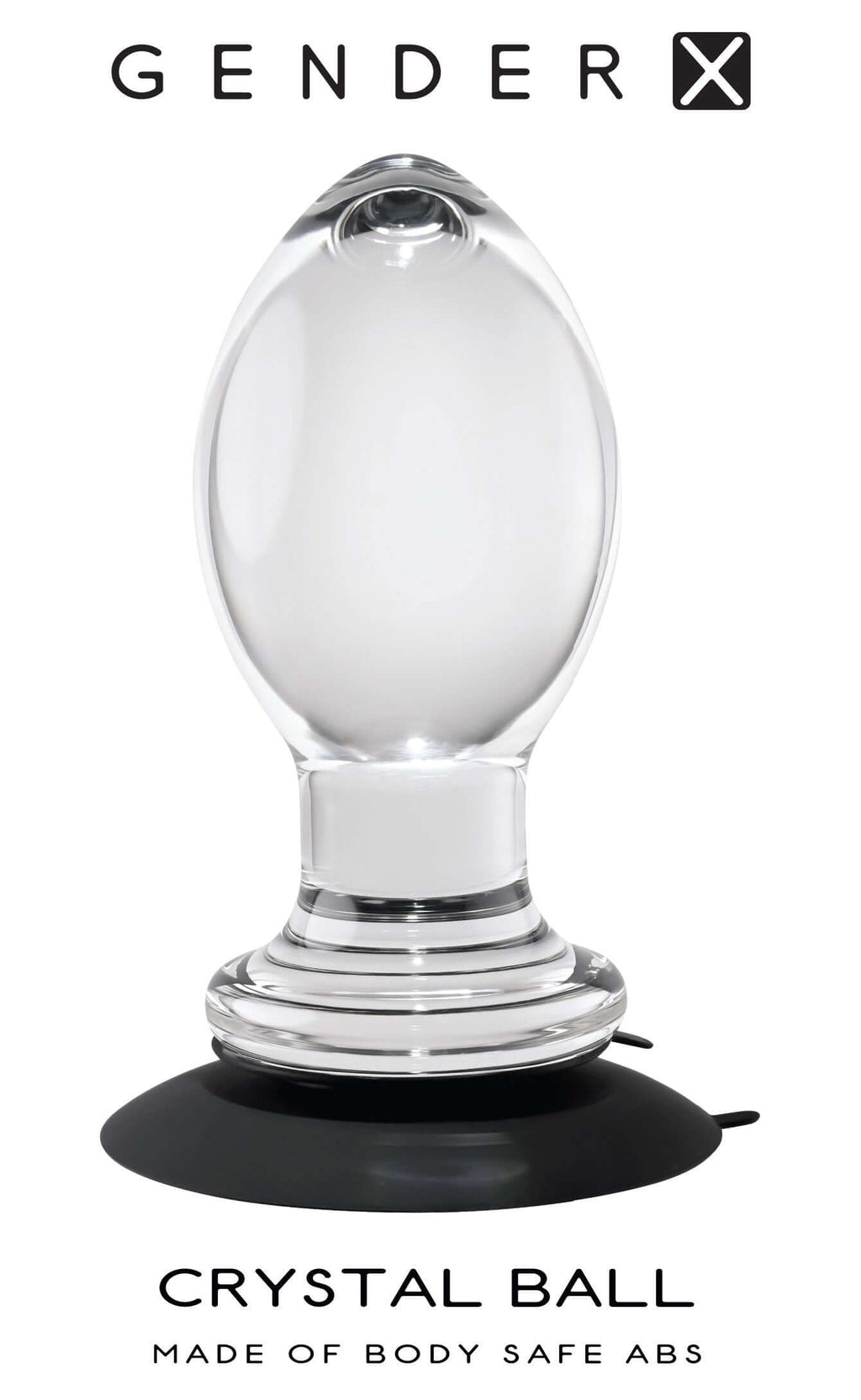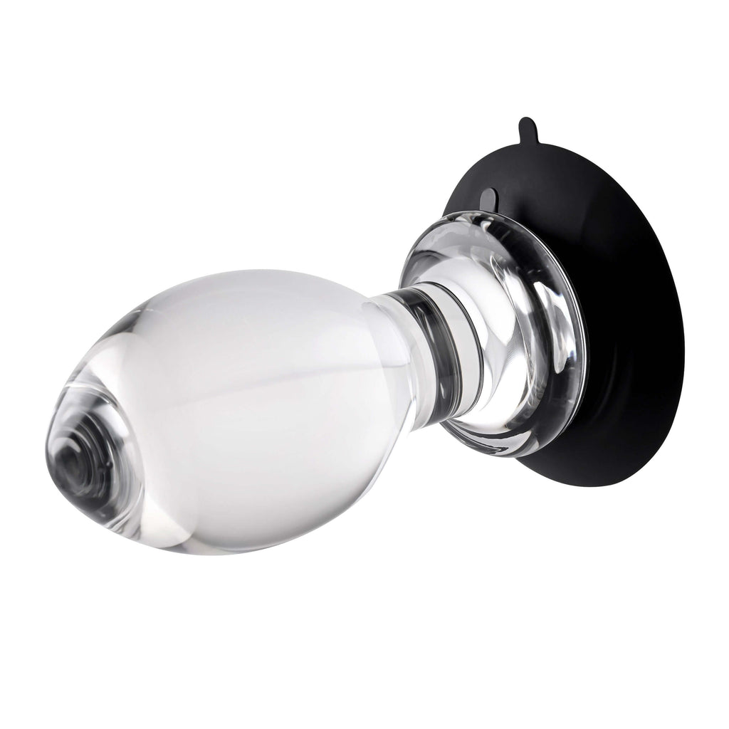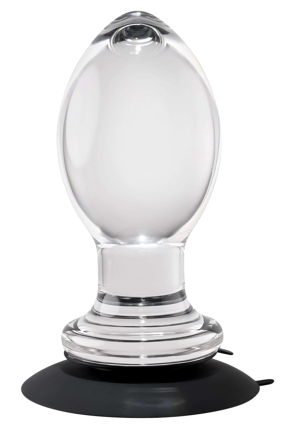 • Crystal clear plug with suction cup • Elegant tapered egg shape with slim shaft • Powerful 2-sided suction cup – sticks to toy and surface • Wide base for safety • Made from glossy slick ABS plastic • Suction cup made from silicone • Phthalate and latex free • Waterproof