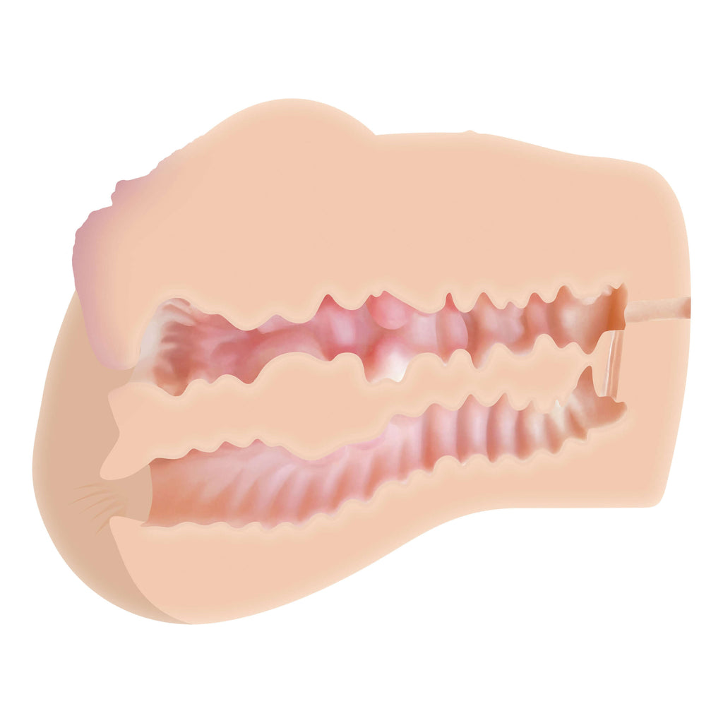 • Like-like double-entry stroker • Made from stretchy, pliable TPE rubber • Pink-colored vaginal lips • "Hip" handles at sides for easy grip • Perfect for front and back door fantasies! • Super hot Dani Daniels DVD download included • ZT lube foil pack included • Hole at end of stroker for easy cleaning • Height: 4.72", Depth: 5.91", Width: 7.68" • Phthalate and latex free • Waterproof
