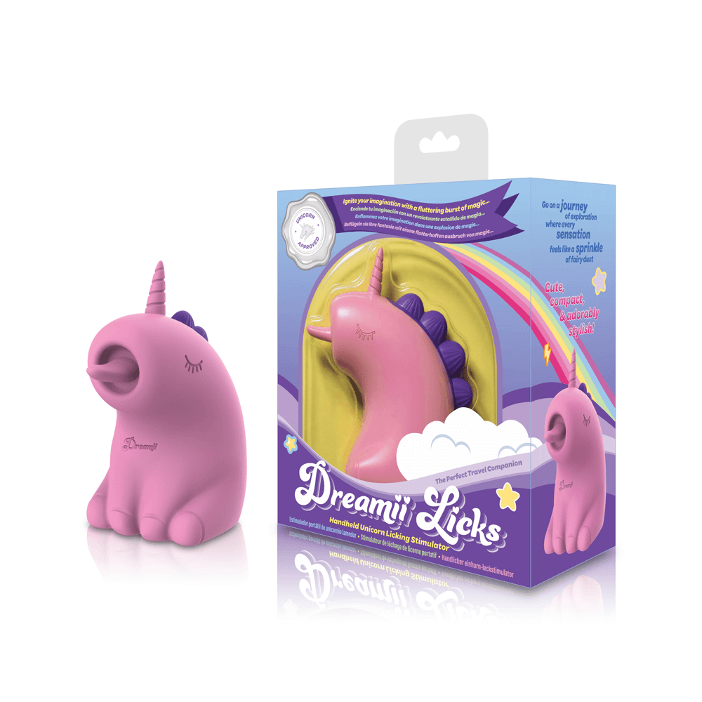 Welcome to the magical world of Dreamy Licks, a handheld vibrator so adorable and enchanting, it feels like a wish come true! Designed to tickle your senses and ignite your imagination, this delightful unicorn vibe features a playful, rotating tongue that mimics the sweetest, most tantalizing licks you could dream of. Cute, compact, and utterly irresistible, Dreamy Licks is the perfect blend of fun and function, ready to whisk you away to a land of endless pleasure. Whether you're seeking a playful escape or a touch of whimsical self-care, Dreamy Licks is here to make every moment magical. It's easy-to-use design makes it perfect for beginners and enthusiasts alike, while its soft, body-safe materials ensure a velvety touch that feels as good as it looks. Let Dreamy Licks take you on a journey of joy and exploration, where every sensation feels like a sprinkle of fairy dust.