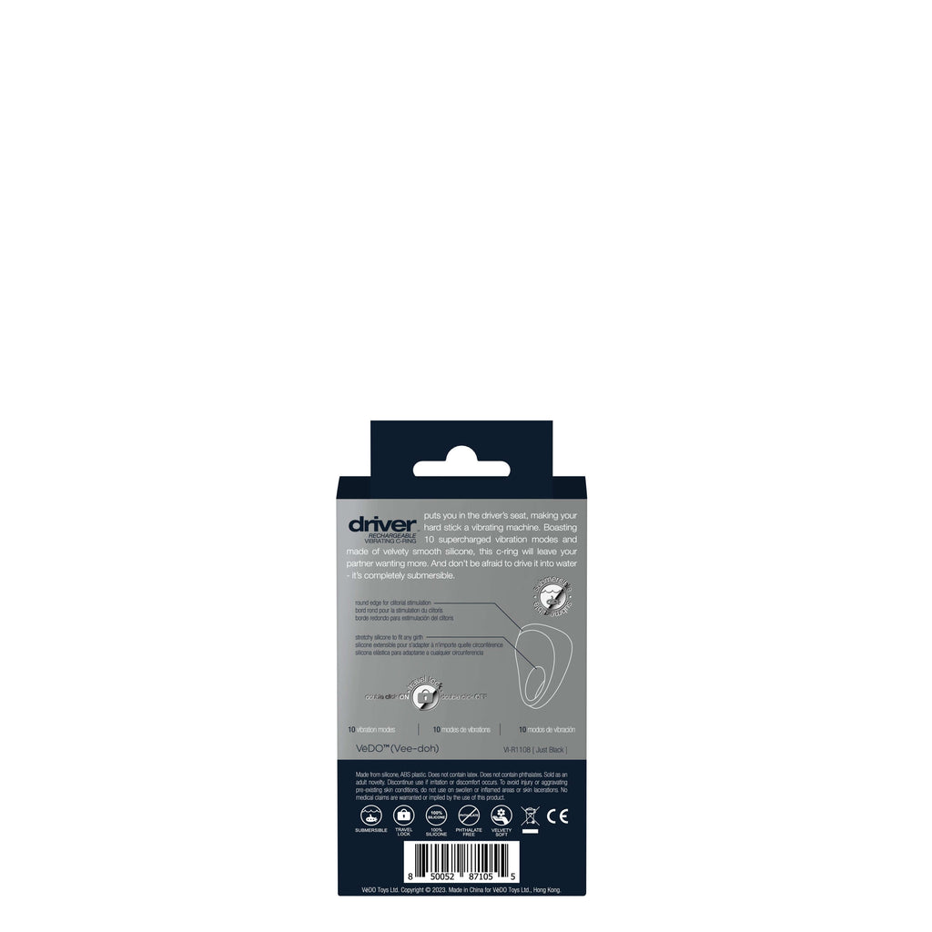 Rev up your intimate moments with the Driver Rechargeable Vibrating C-Ring. Designed for mutual enjoyment, this C-Ring offers 10 supercharged vibration modes that will electrify your experience. Made of velvety smooth, body-safe silicone, it comfortably fits any girth and heightens pleasure for both partners. And for those who love to take the action to the water, it's fully submersible!