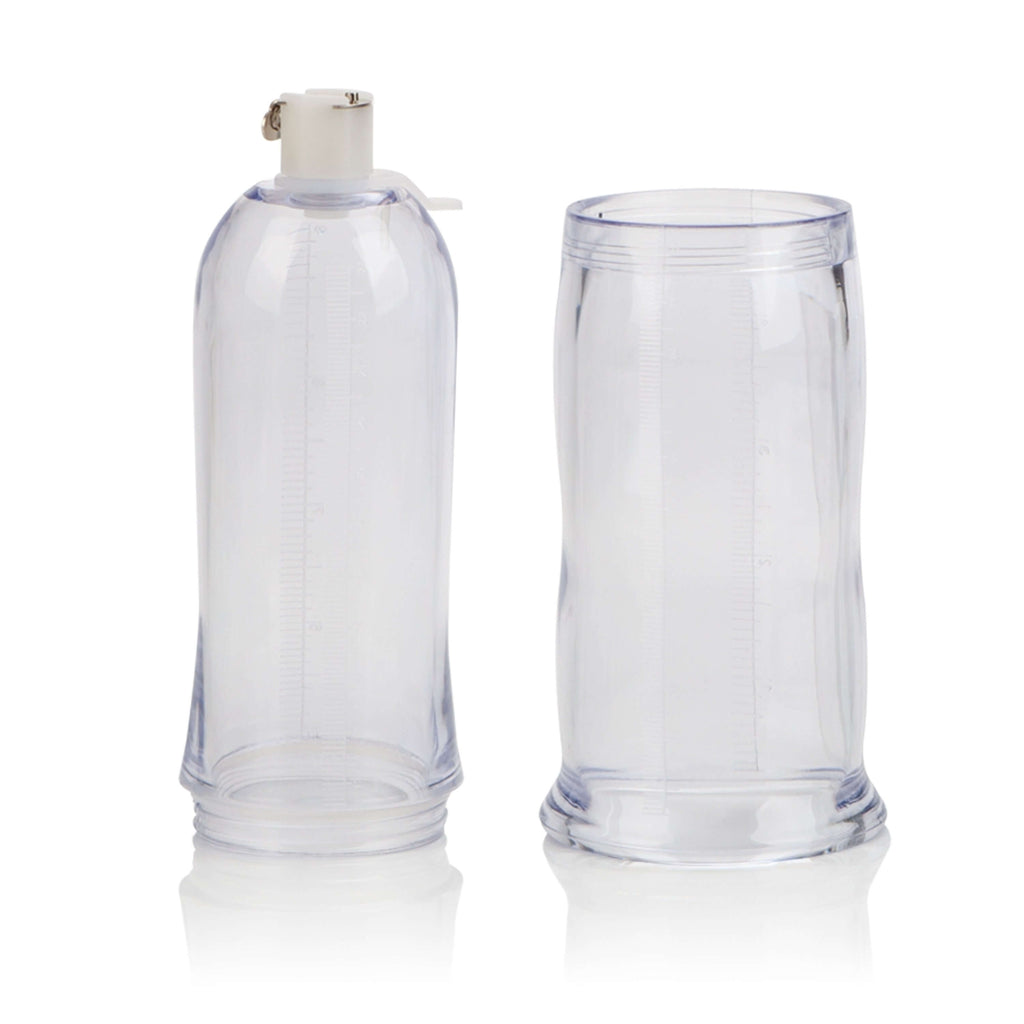 Premium travel pump system with a patent pending quick release pull tab valve maintains suction even when the hose is removed. Sturdy threaded 2 piece cylinder has a contoured grip and disassembles and nests for compact storage and travel. Universal measurements on cylinder track results. Newly designed hand pump with an easy finger grip handle. Tapered Silicone donut for secure suction. Includes the Silicone Commander erection enhancer and handy travel bag.