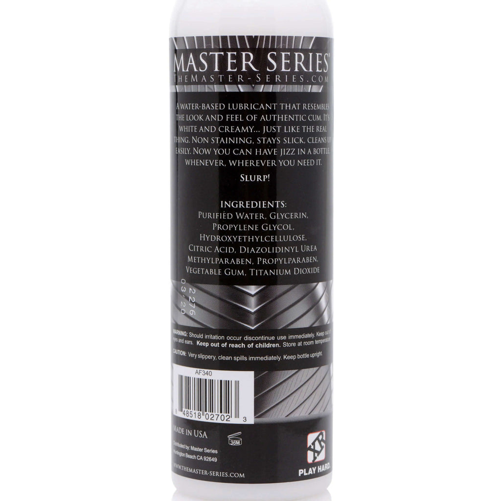 Indulge your fantasies with a water-based lubricant that resembles the look and feel of authentic cum. It is white and creamy... just like the real thing! This unique lube is non-staining, stays slick, and cleans up easily. There is no scent so that you can feel free to fill yourself up or pour it all over your body. Now you can have jizz in a bottle, whenever, wherever you need it!
