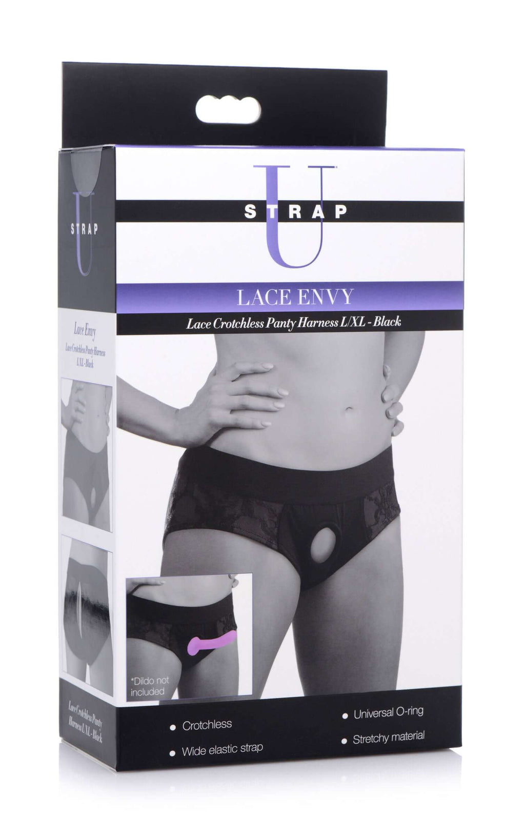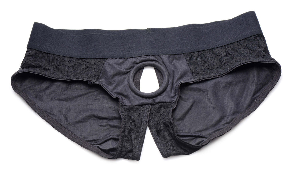 This lacey harness is crafted for functionality and comfort. The crotchless design keeps you ready for action when the mood to switch positions arises, allowing you and your lover to play with absolute freedom. The lingerie styling and universal O-ring let you get your strap-on in style and comfort!