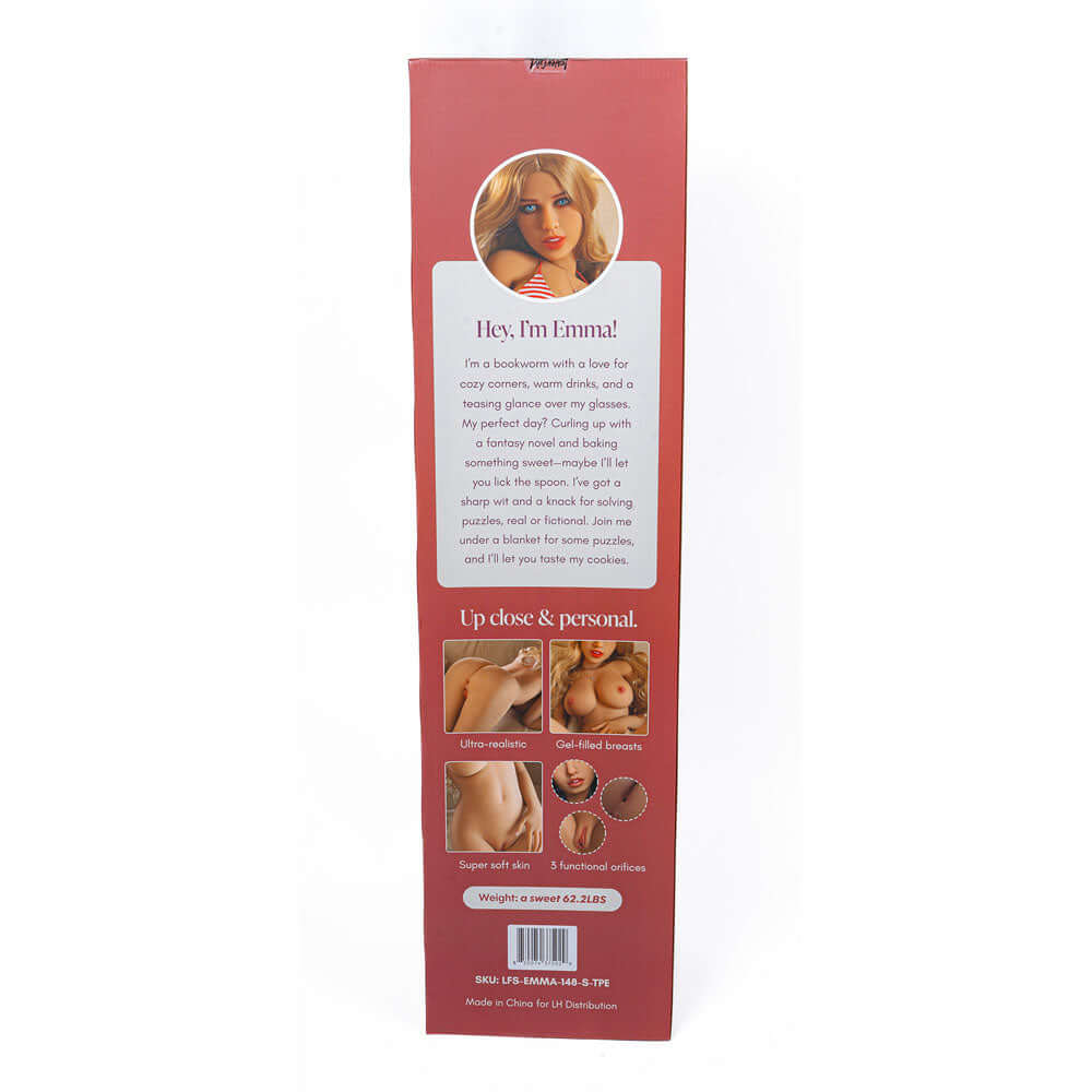 • Height: 4ft 11" / 148cm • Weight: 62.2 lbs • Appearance: White Caucasion, Blonde Hair, Latte color skin • Material: Lovegirl Sensiskin - Soft as ever, but now with a cutting-edge vibe • Full Articulation: Poseable Joints engineered to mirror the complete range of movement for dynamic, natural poses. • Gel filled breasts • Self-Standing design, ingeniously balanced to stand on her own two feet, perfect for display and spontaneous positioning. • Three pleasure orifices. • Box Sleeve incuded Measurements: • Shoulder: 12.6" • Upper Breast: 29.9" • Lower Breast: 21.6" • Hand: 6.3" • Arm: 22.8" • Waist: 20.4" • Hip: 28.7" Leg: 32.6" Feet: 8.25" • Vagina: 6.7" • Anal: 5.5" • Oral: 4.7" • Clothing NOT included