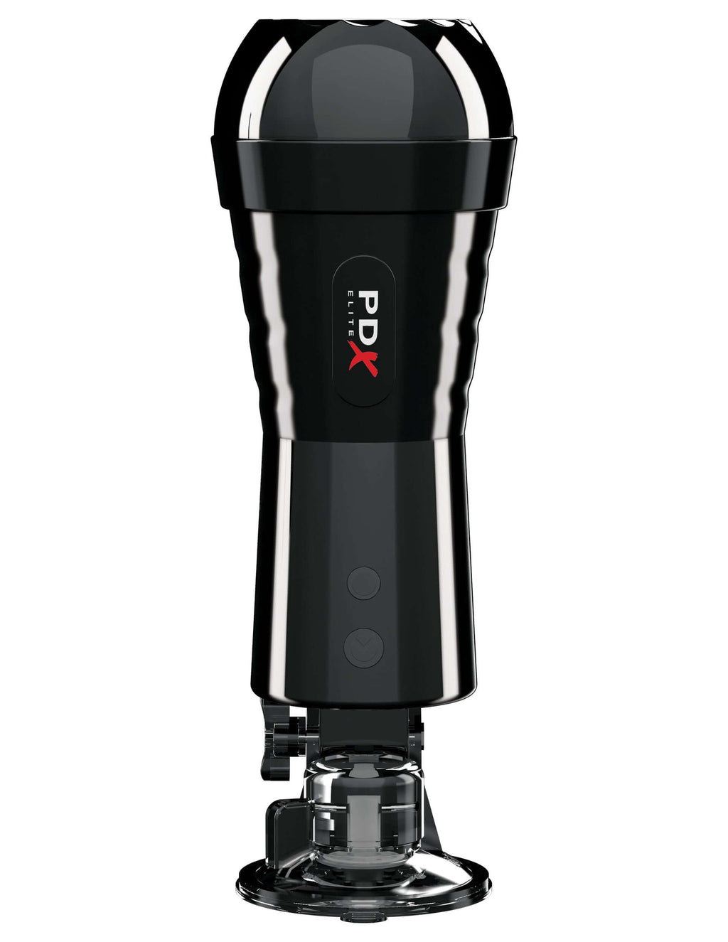 The PDX Elite Cock Compressor Vibrating Stroker's innovative air bag technology is designed to inflate and deflate while surrounding your shaft with stimulating squeeze and release pressure.