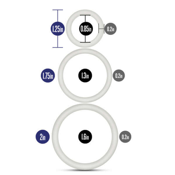 Cock rings work by gently constricting blood flow in the penis, which can help support erection strength and prolong endurance. The Performance Vs4 Pure Silicone Cockring Set White is designed to deliver these benefits while remaining soft, stretchy, and comfortable during wear. The smooth silicone construction makes each ring easy to put on and remove, while still providing a secure, supportive fit.