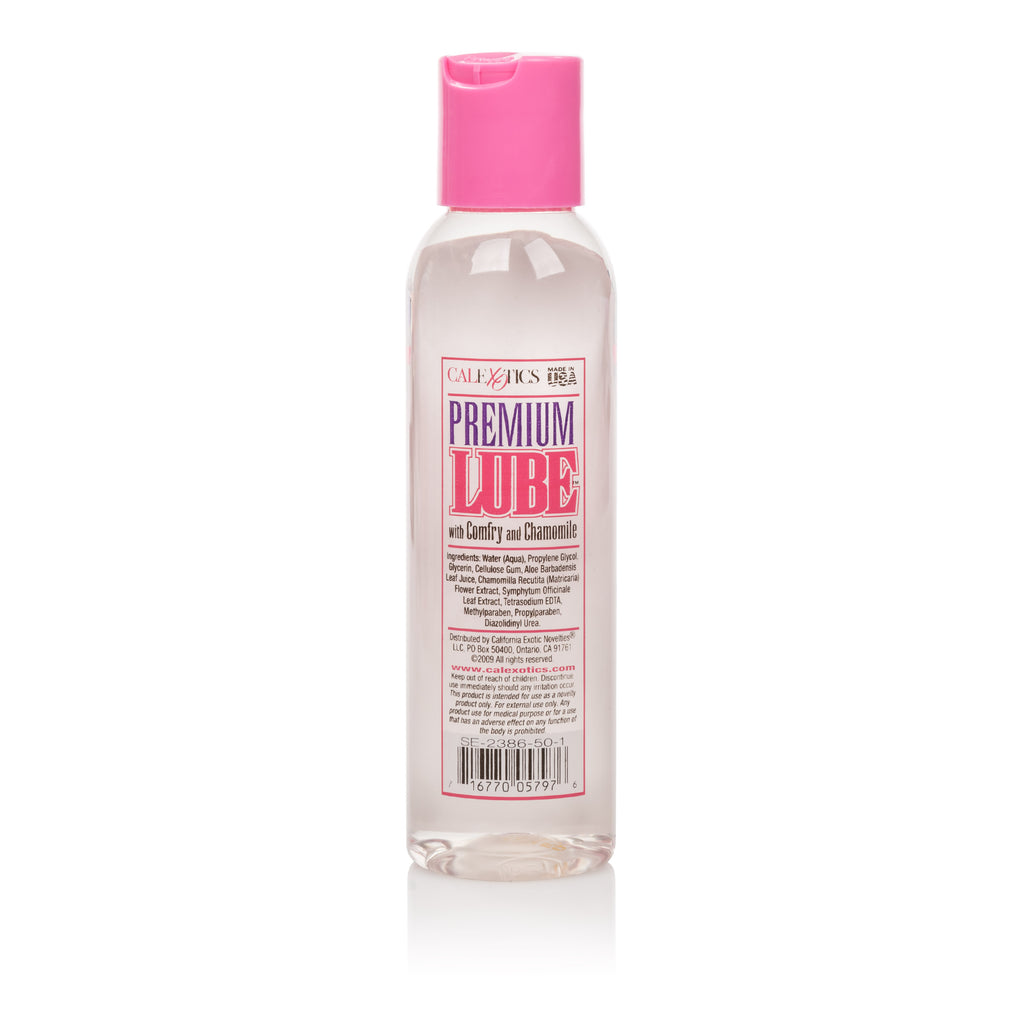 Premium Lube is unscented and infused with soothing Comfry and relaxing Chamomile. The smooth and silky lube is easy to apply, and also recommended for use with toys. Increase your friction stimulation ecstasy by ensuring that you lube up your love holes before penetrative play. This lube is designed for use during every intimate encounter. Apply the the lube to your preferred pleasure zone and get ready to experience mind-blowing arousal and stimulation as the formula creates the perfect sliding and gliding action. Use for vaginal intercourse or anal probing that blows your mind.