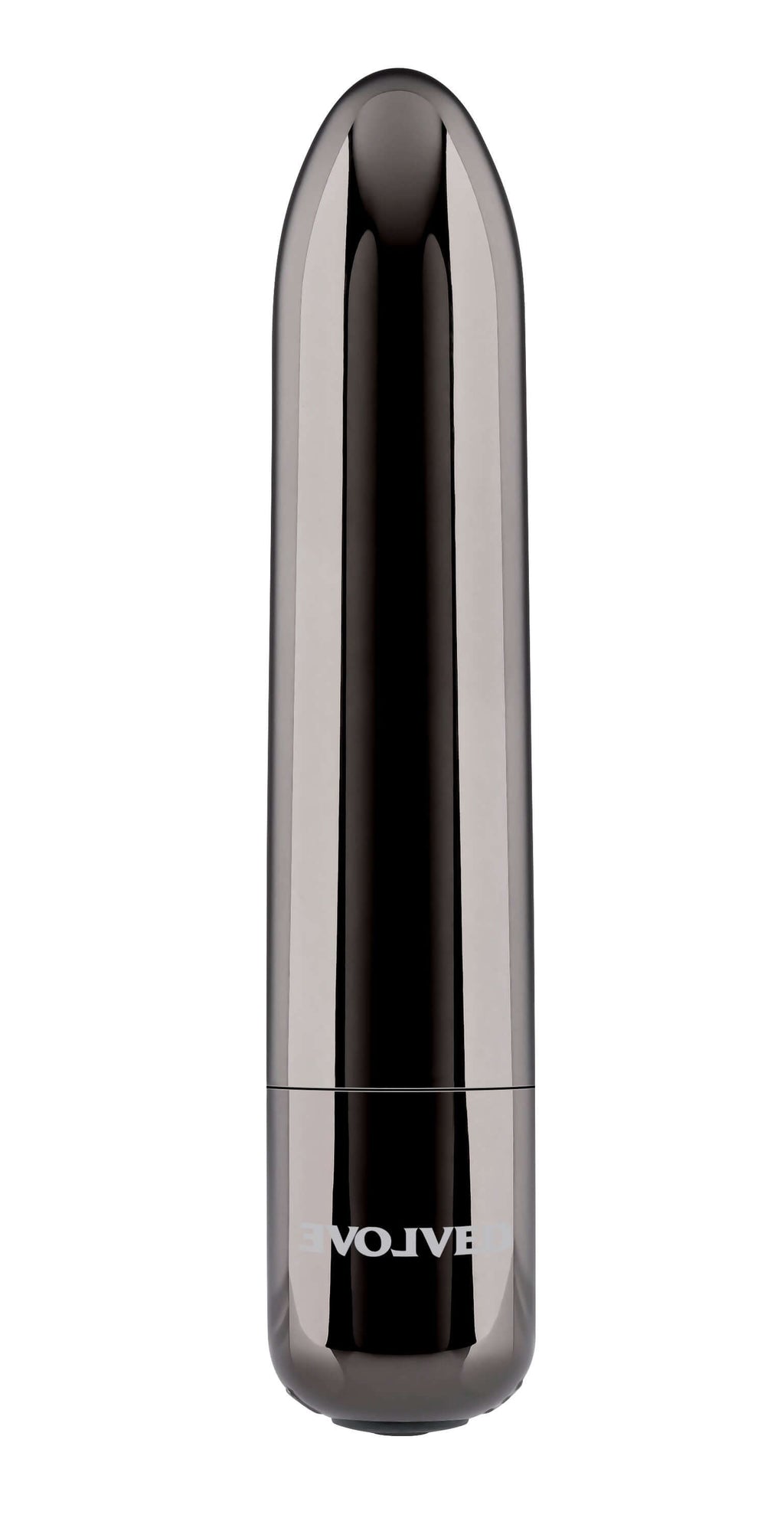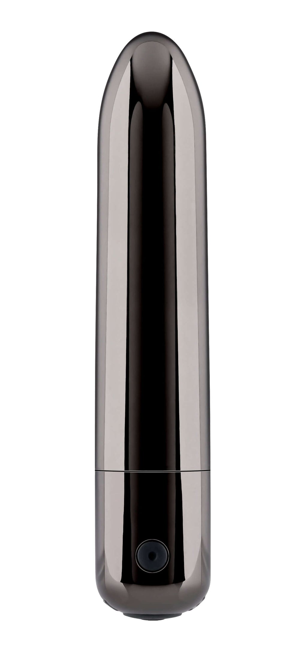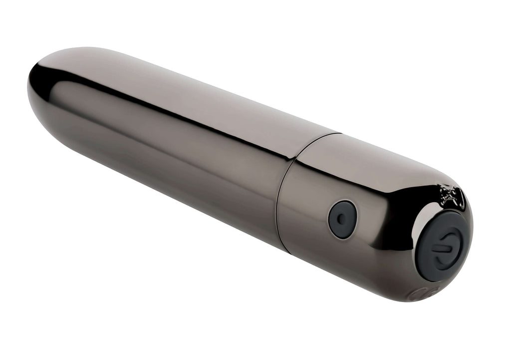 • Rechargeable black chrome bullet • Powerful 10 function vibrating motor • Tapered tip targets your favorite hot spots • Metal finish feels sleek and smooth • Easy-to-use single LED control button • Made from black chrome finished ABS plastic • Buttons and detail made from silicone • Phthalate and latex free • Waterproof and submersible • Rechargeable, USB cable included