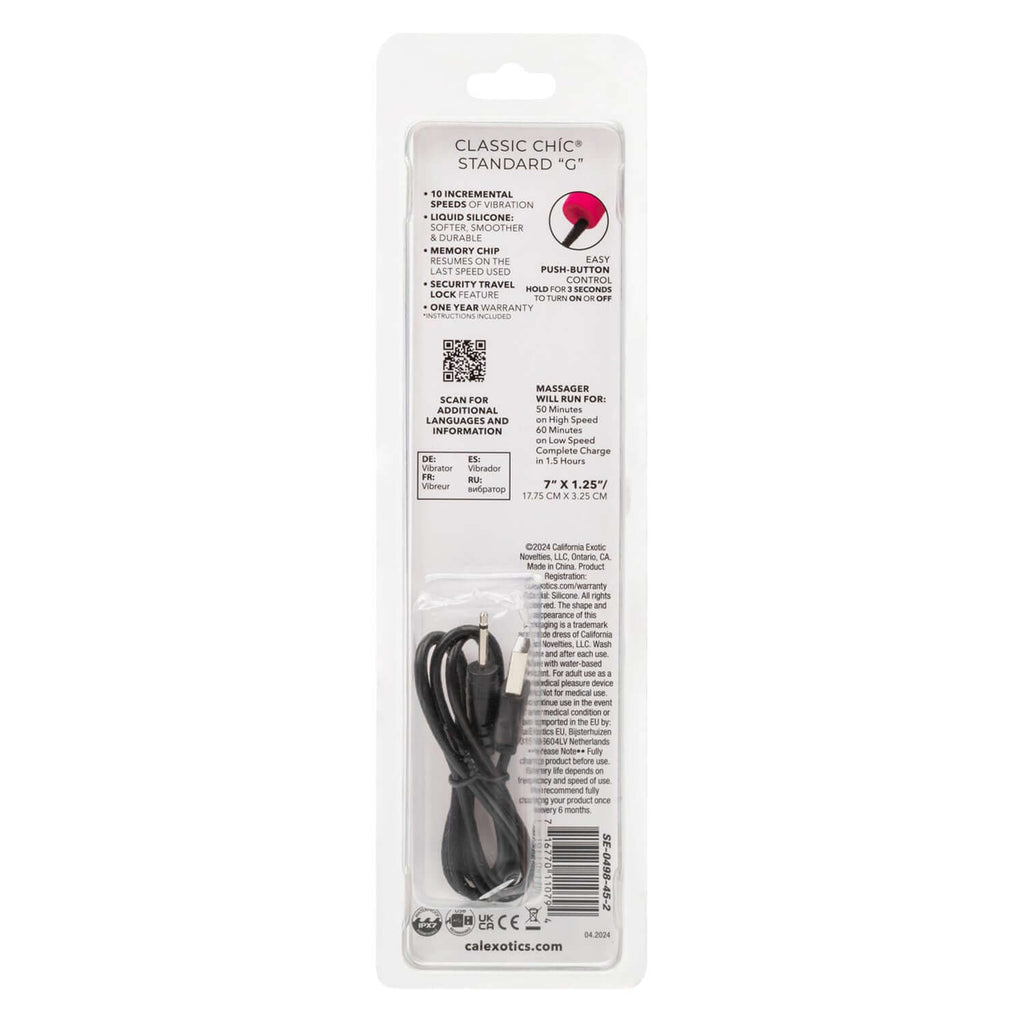 Feel the magic as you explore 10 incremental speeds of vibration, each setting designed to escalate your excitement from gentle whispers to powerful crescendos. Whether you’re chasing a slow-building climax or an immediate immediate thrill, the Classic Chic Standard "G" meets every mood with precision and indulgence.