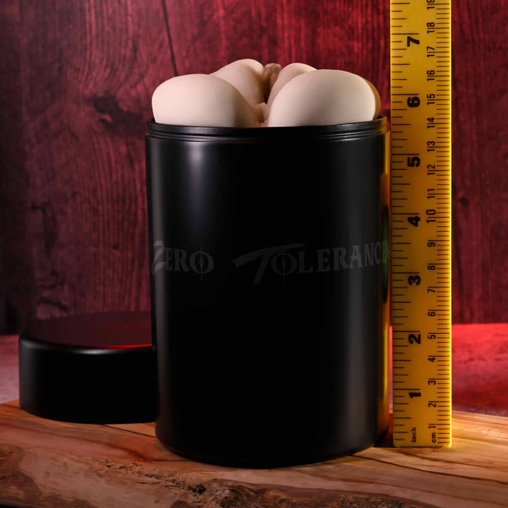 • Height: 7", Depth: 4.57", Width: 2.89" • Insertable length for both entries: 4.5" • Made from phthalate and latex-free TPR • Stroker removes for cleaning • Waterproof and submersible • ABS canister with removeable cap • Canister Height: 6.85”, Depth: 4.05”, Width: 4.05”
