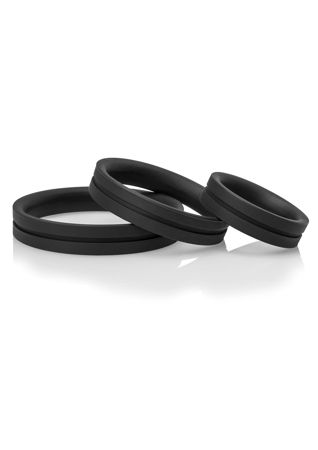 The RingO Pro x3 variety pack makes it easy to enjoy three soft-and-stretchy sizes for three unique intimate sensations. Made of body-safe True Silicone, RingO Pro x3 cock rings feature a wider band for a snug and secure fit that flexes with the body for a comfortable feel. Choose from L, XL, and XXL and enjoy the benefits of a stretchy silicone cock ring made for better, more satisfying sex!