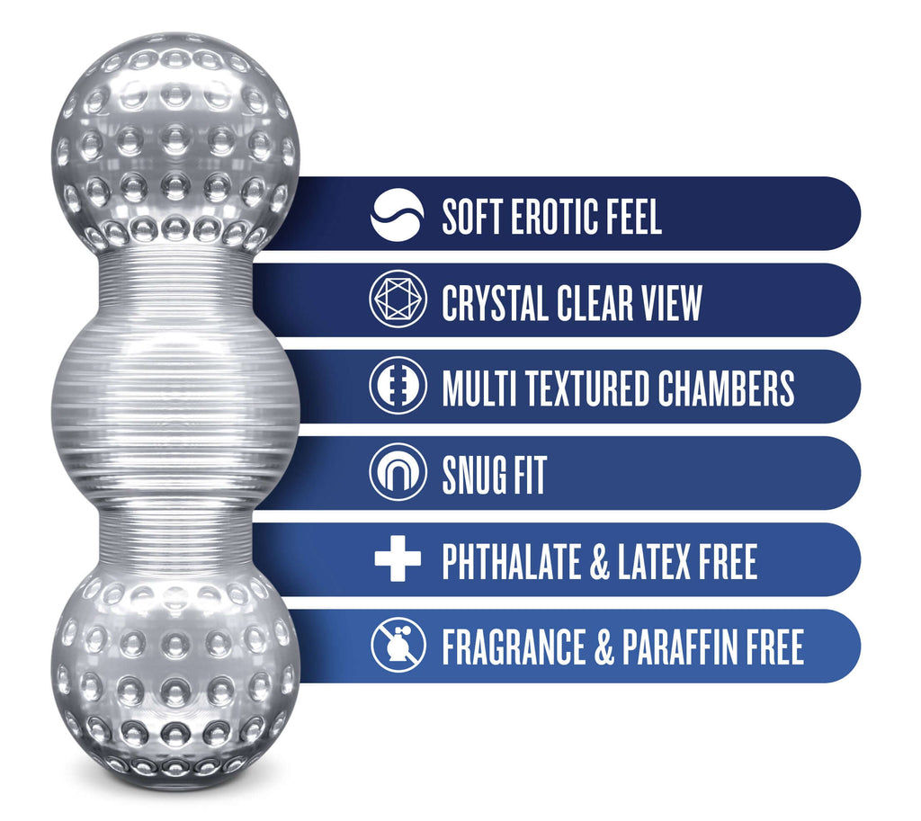 • Beads • Ridges • 3 texture chambers • Transparent • Super soft feel • Man cave essentials • De-stress • Shame-free • Body safe • Phthalate free