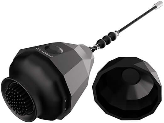 • Diamond textured egg with spinning silicone brush inside • Remove cap to reveal spinning clitoral brush • Over 60 small nubs move in a circular pattern • Teasing and intense clitoral stimulation • Powerful motor drives spinning action • Easy to use 1-button control • 7 rotating speeds and patterns • Made from durable ABS plastic • LED illuminates when in use • Brush made from soft, creamy silicone • Height: 2.71", Depth: 1.78", Width: 1.78" • Weight: under .5lb • Stylish beaded string handle • Phthalate and latex free • Waterproof and submersible • Magnetic rechargeable, USB cable included