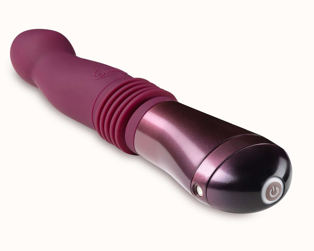 • Platinum-cured ultrasilk silicone • 3 speed thrusting • G-Spot vibration • Silky smooth • Body safe and phthalate free • IPX7 waterproof • Charging light indicator • Magnetic recharging • Ergonomic handle • USB charging cable included • Powerful thrusting
