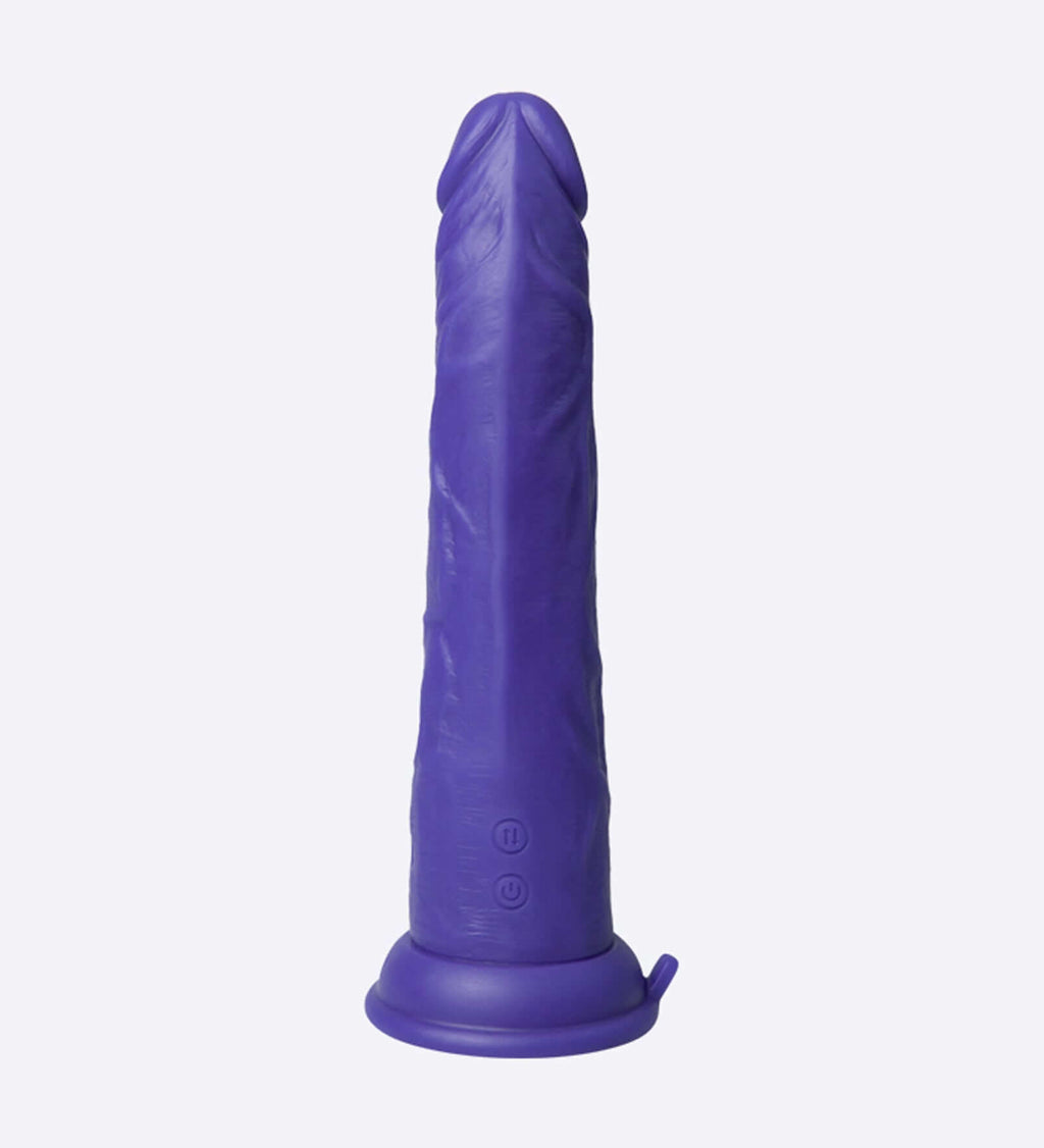 • 10 vibration modes • 3 thrusting speeds • Dual stimulating heads • Boost mode • Liquid silicone • 100% waterproof • USB rechargeable • Remote control • Suction cup base • Harness compatible • 1/2" (3.81 cm) of thrust
