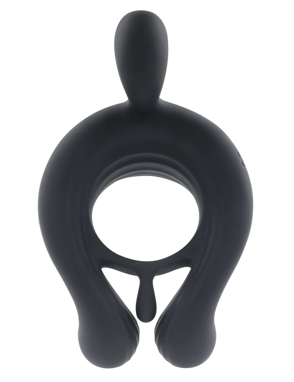 It's a Triple Play! This remote control operated Cock Ring with its three powerful vibrating motors proves that good things come in threes. The horseshoe shaped ring made of velvet-smooth silicone stimulates with 9 vibrating speeds and patterns, while its stretchy ring works to support longer, stronger erections. It's perfect for indulging solo sessions and partner pleasure.