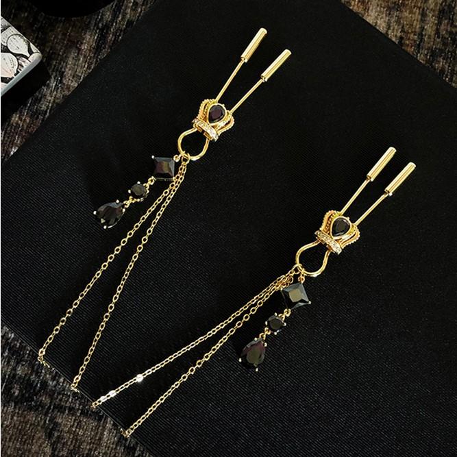 You're the king of the game... Let the clamps take charge of your body and release your deepest desire through amplified sensitivity. The clamps can be adjusted. The chains between the clamps are the trigger for your love and desire. These nipple clamps can be used as restraints and oscillate when the body moves.